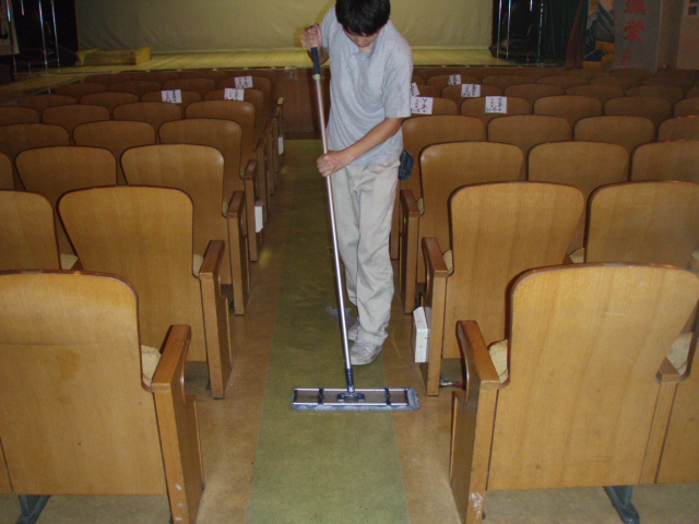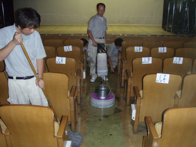 大勢のお客様が毎日劇場をご利用しますので、定期的に床の洗浄とワックス塗布を実施し美観を維持しております。