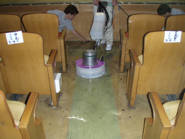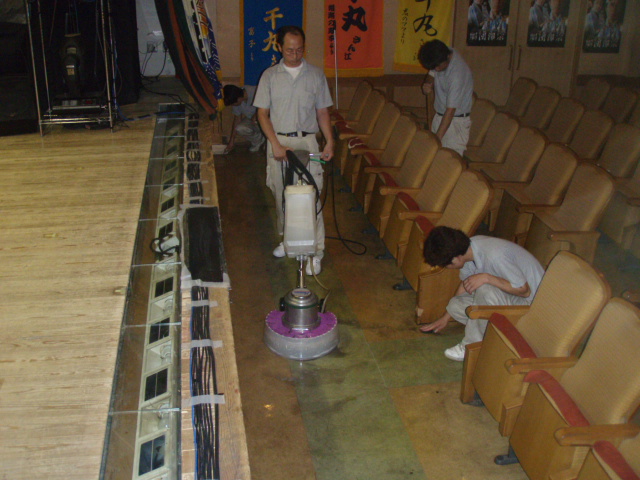 HOME > 施工例:ビル建物清掃管理 > 大阪市 大衆演劇 鈴成座 床面定期清掃