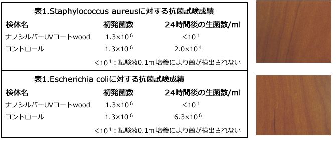 以下はそのナノシルバー水性UV塗料による抗菌確認試験結果